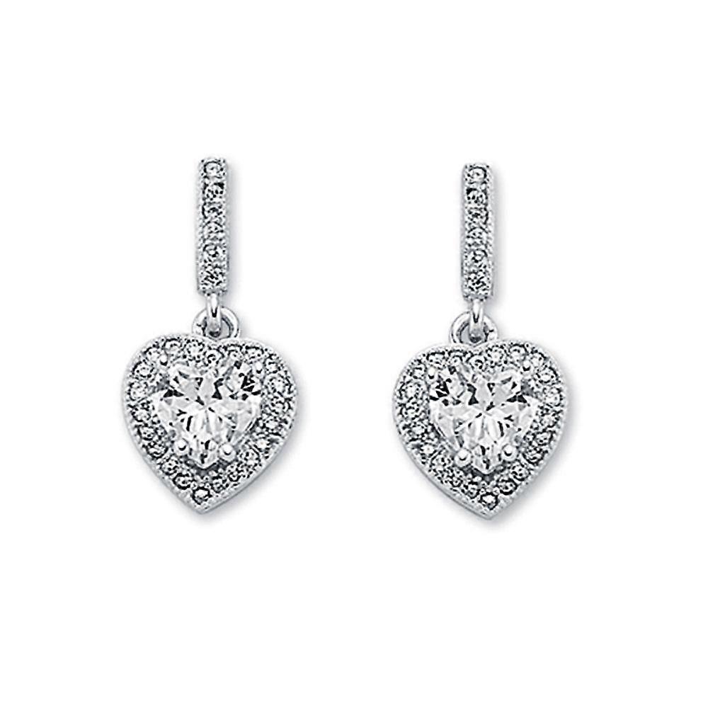 Jewelco London Rhodium Plated Sterling Silver Heart Cubic Zirconia Cluster Stud Earrings 6mm 10mm