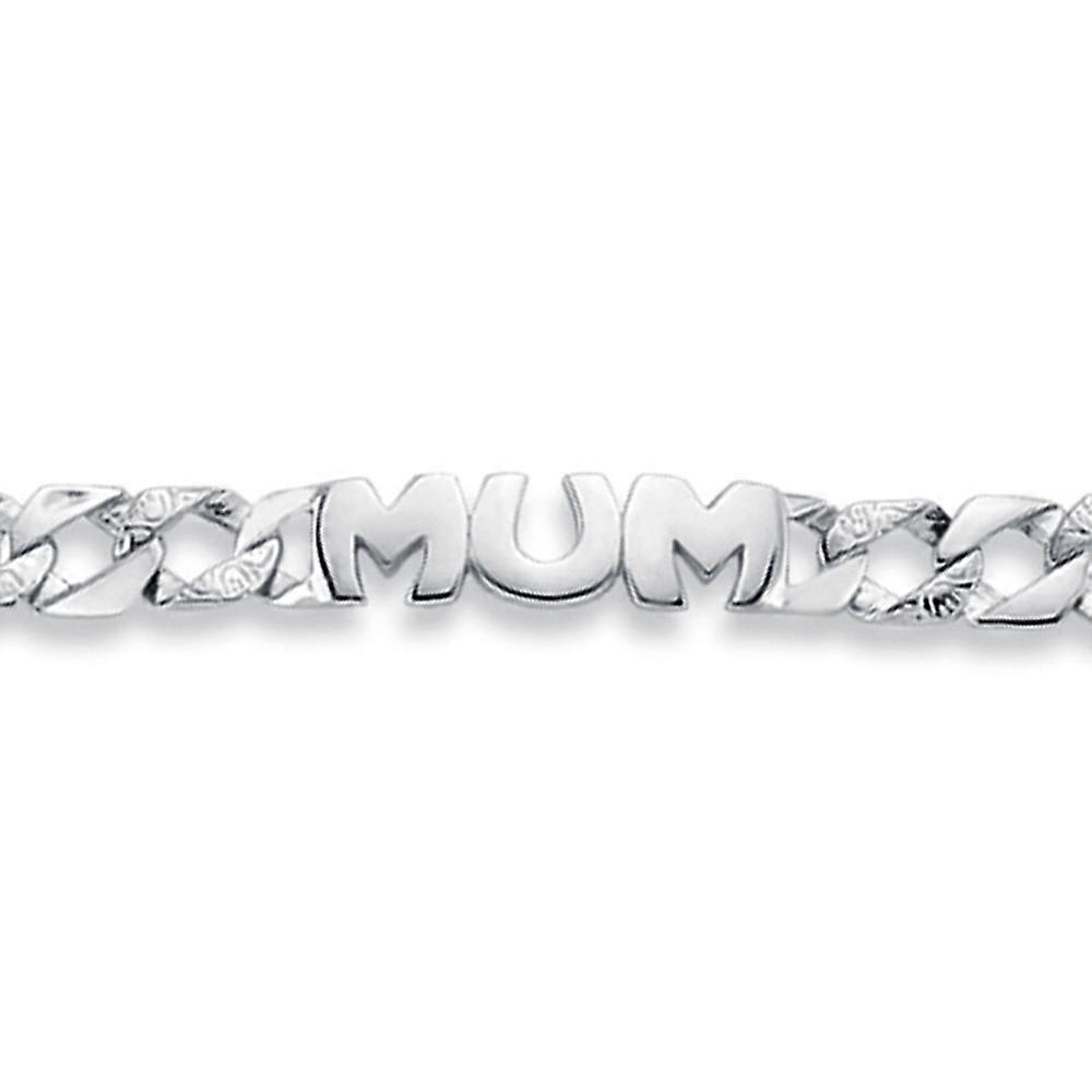 Jewelco London Rhodium Plated Sterling Silver MUM Family Bracelet 7mm 7.5 inch