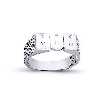 Jewelco London Rhodium Plated Sterling Silver MUM Signet ID Ring 6mm