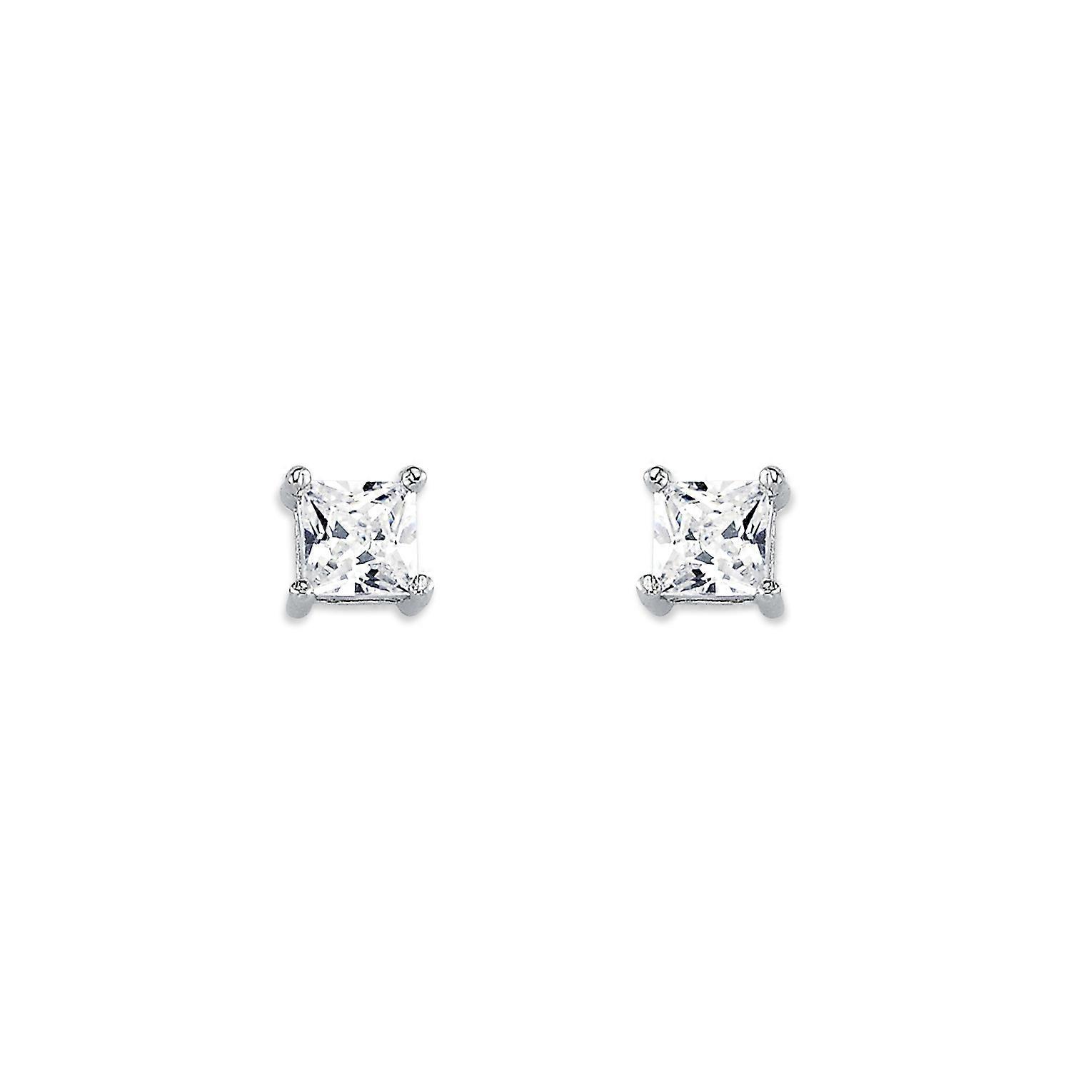Jewelco London Rhodium Plated Sterling Silver Princess Cubic Zirconia Solitaire Stud Earrings 4mm