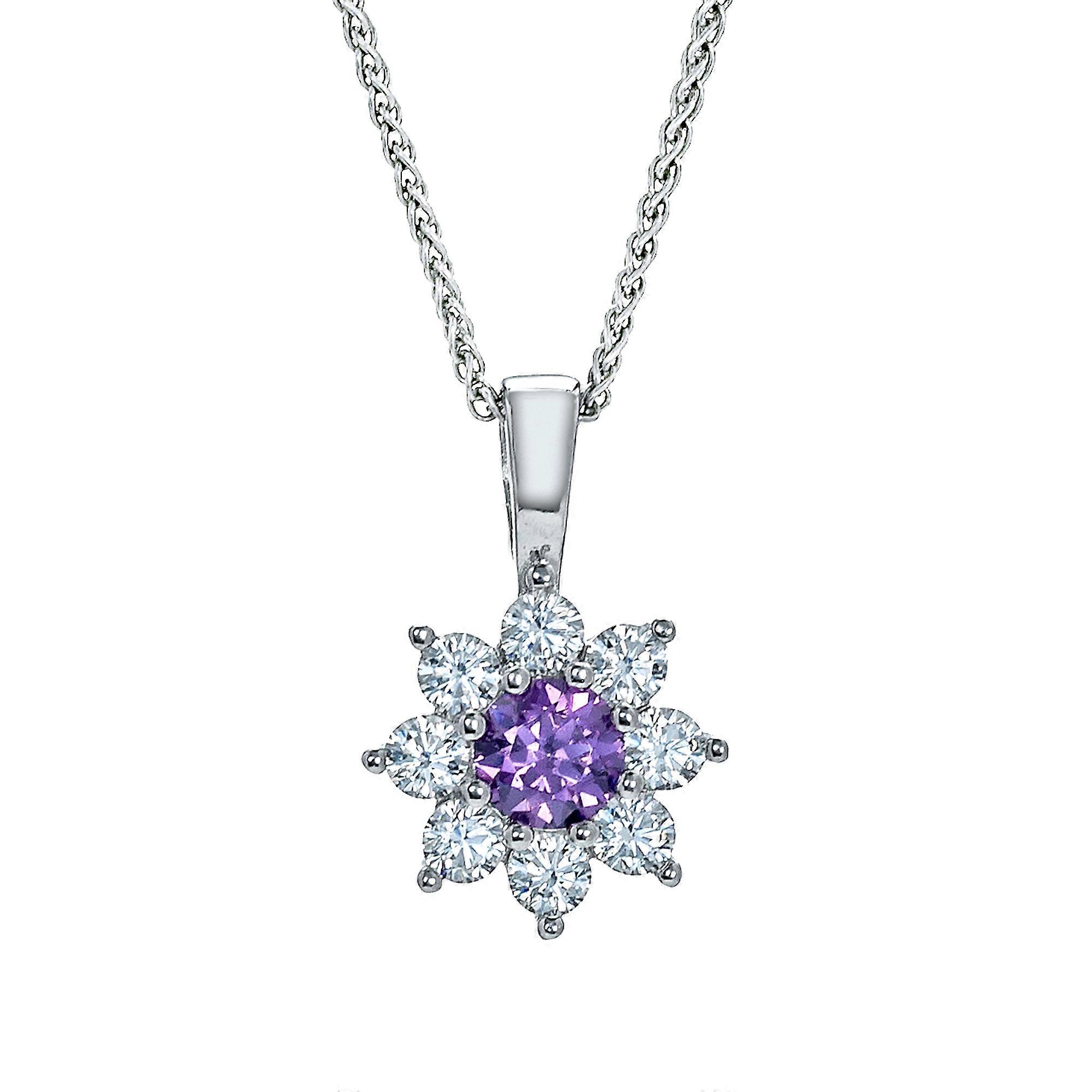 Jewelco London Rhodium Plated Sterling Silver Purple Cubic Zirconia Classic Royal Cluster Charm Pendant Necklace - 16>18 inch