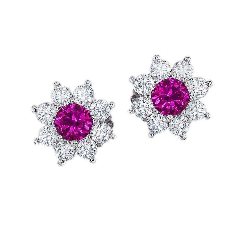Jewelco London Rhodium Plated Sterling Silver Purple Cubic Zirconia Classic Royal Cluster Stud Earrings