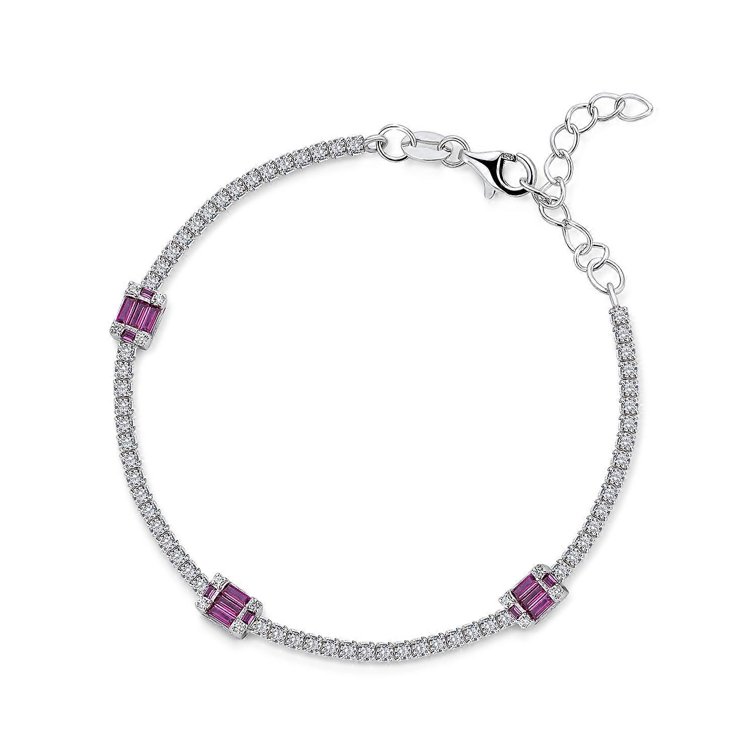 Jewelco London Rhodium Plated Sterling Silver Red Cubic Zirconia Trilogy Eternity Style Adjustable 15-18cm Line Bracelet - 6>7"