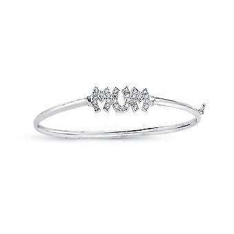 Jewelco London Rhodium Plated Sterling Silver Round Cubic Zirconia MUM ID Bangle Bracelet 3mm