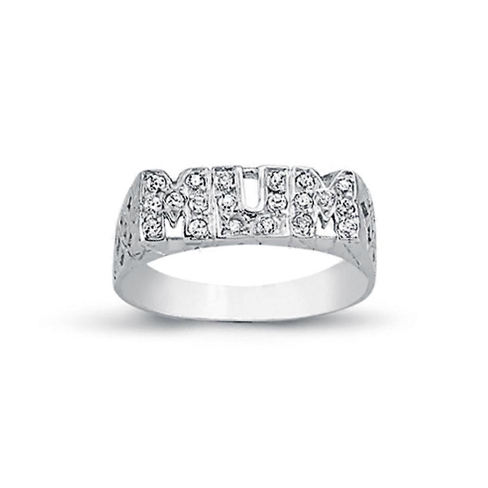Jewelco London Rhodium Plated Sterling Silver Round Cubic Zirconia MUM Signet ID Ring 5mm