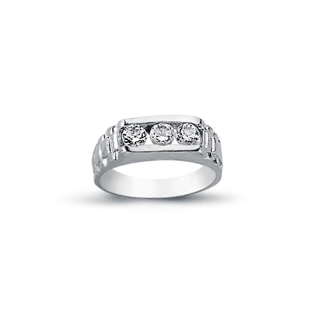 Jewelco London Rhodium Plated Sterling Silver Round Cubic Zirconia Trilogy Watch Style Signet Ring 4mm