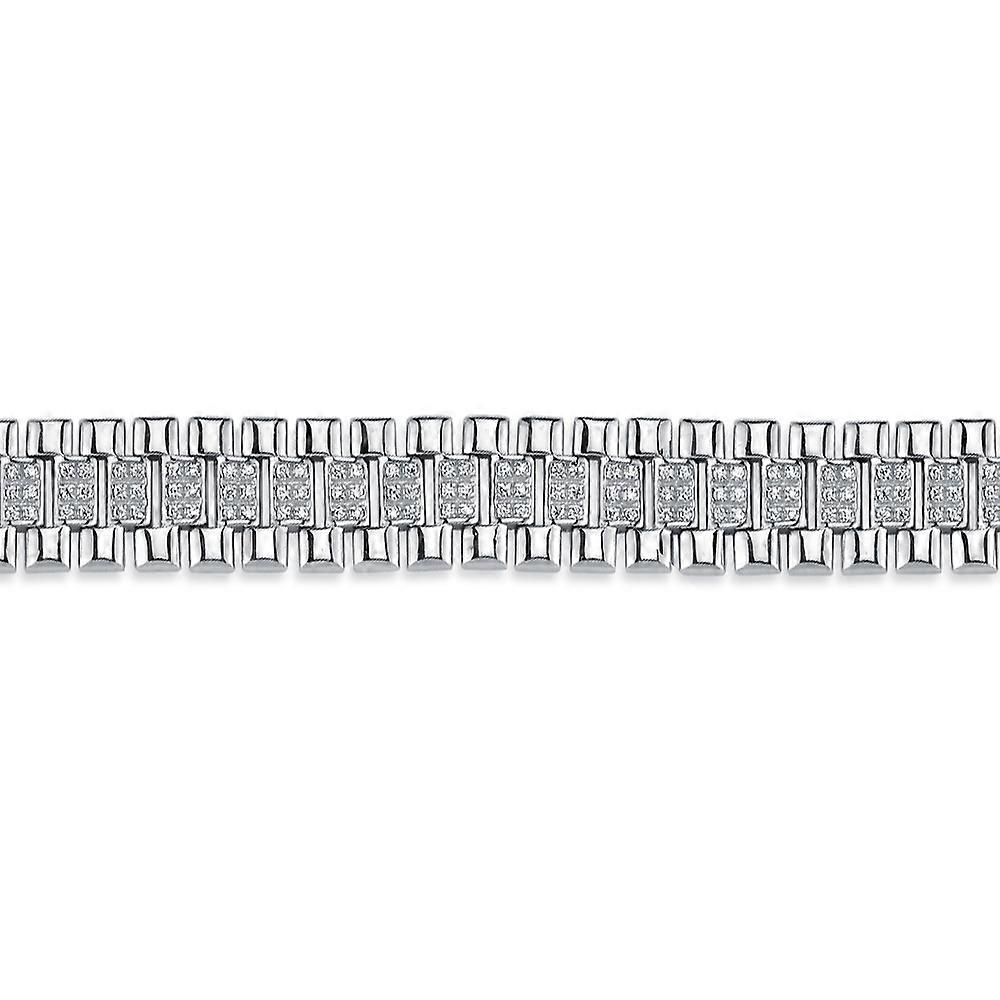 Jewelco London Rhodium Plated Sterling Silver Round Cubic Zirconia Watch Link Bar Bracelet 12mm 7.5 inch