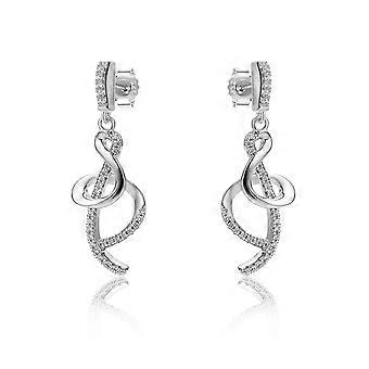 Jewelco London Rhodium Plated Sterling Silver White Cubic Zirconia Ampersand Style Twist Drop Earrings
