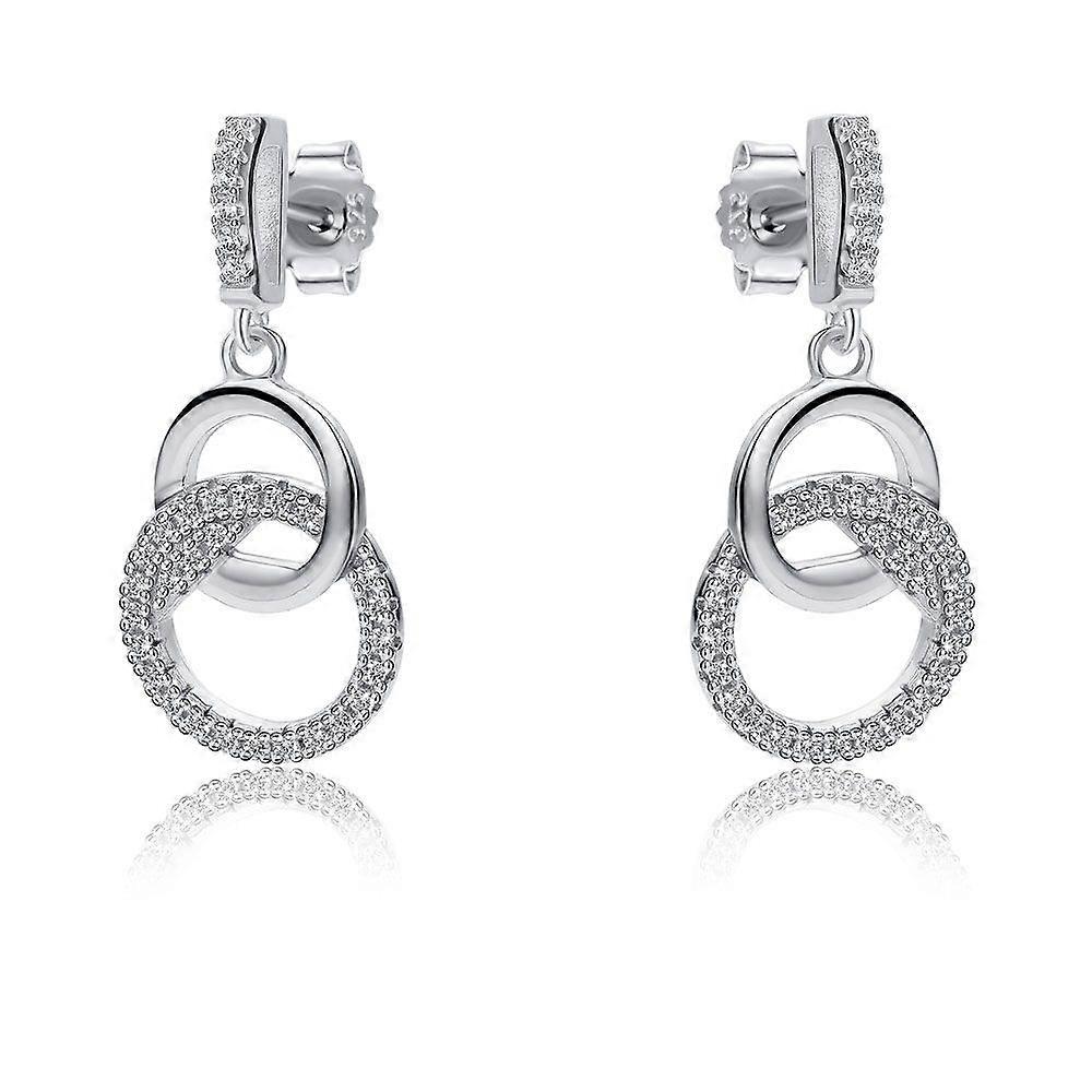 Jewelco London Rhodium Plated Sterling Silver White Cubic Zirconia Interlocked Magic Rings Drop Earrings