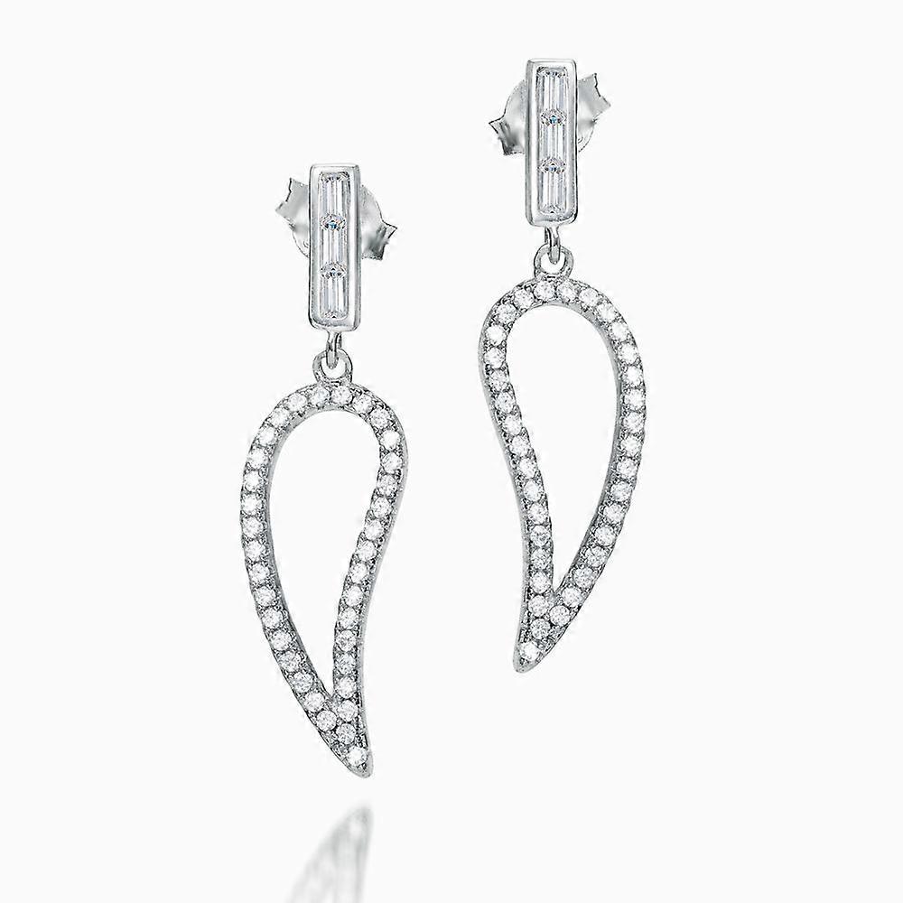 Jewelco London Rhodium Plated Sterling Silver White Cubic Zirconia Minimalist Angel Wings Drop Earrings