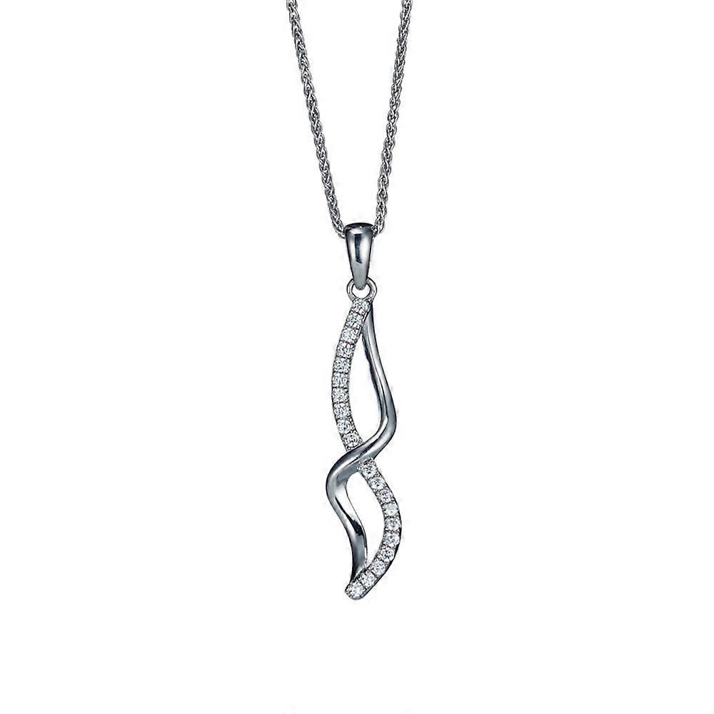Jewelco London Rhodium Plated Sterling Silver White Cubic Zirconia Twisted Infinity Wave Charm Pendant Necklace - 16>18 inch