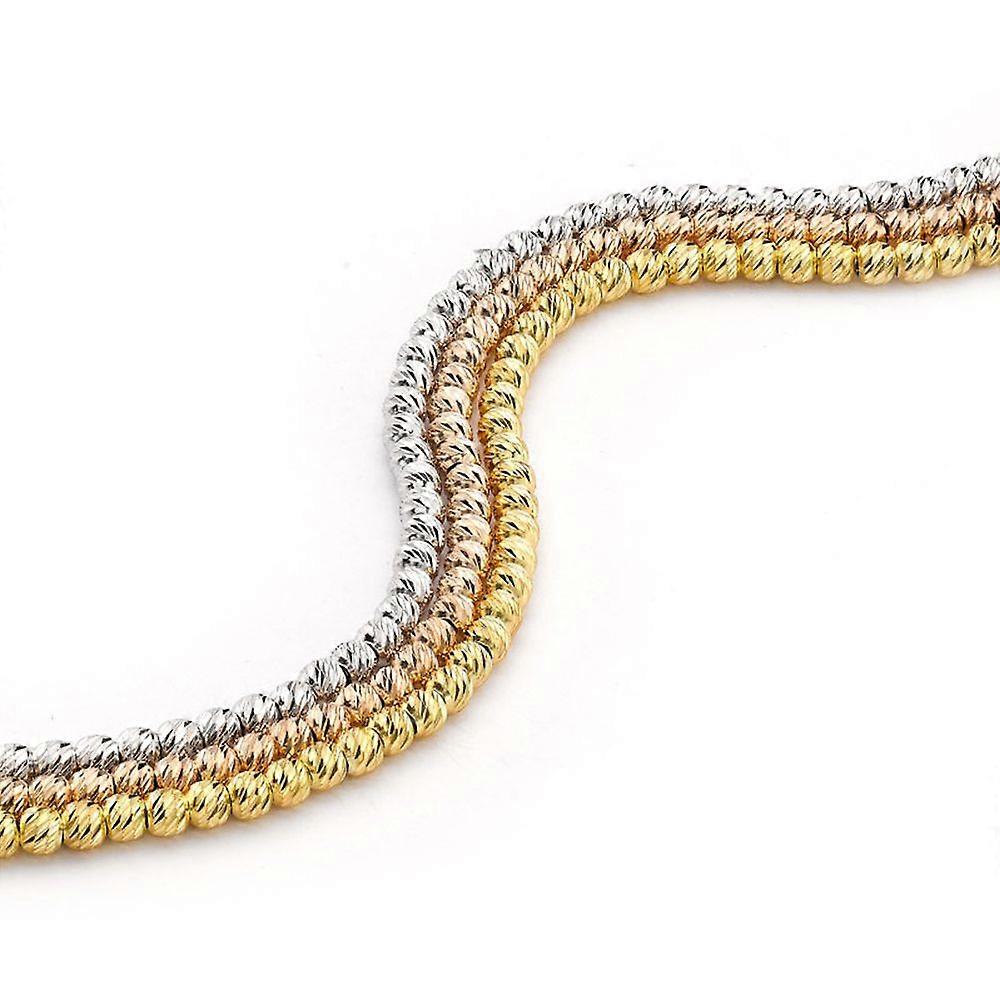 Jewelco London Rhodium, Rose & Gilded Coated Sterling Silver 3 Row Beads Multi-strand Bracelet