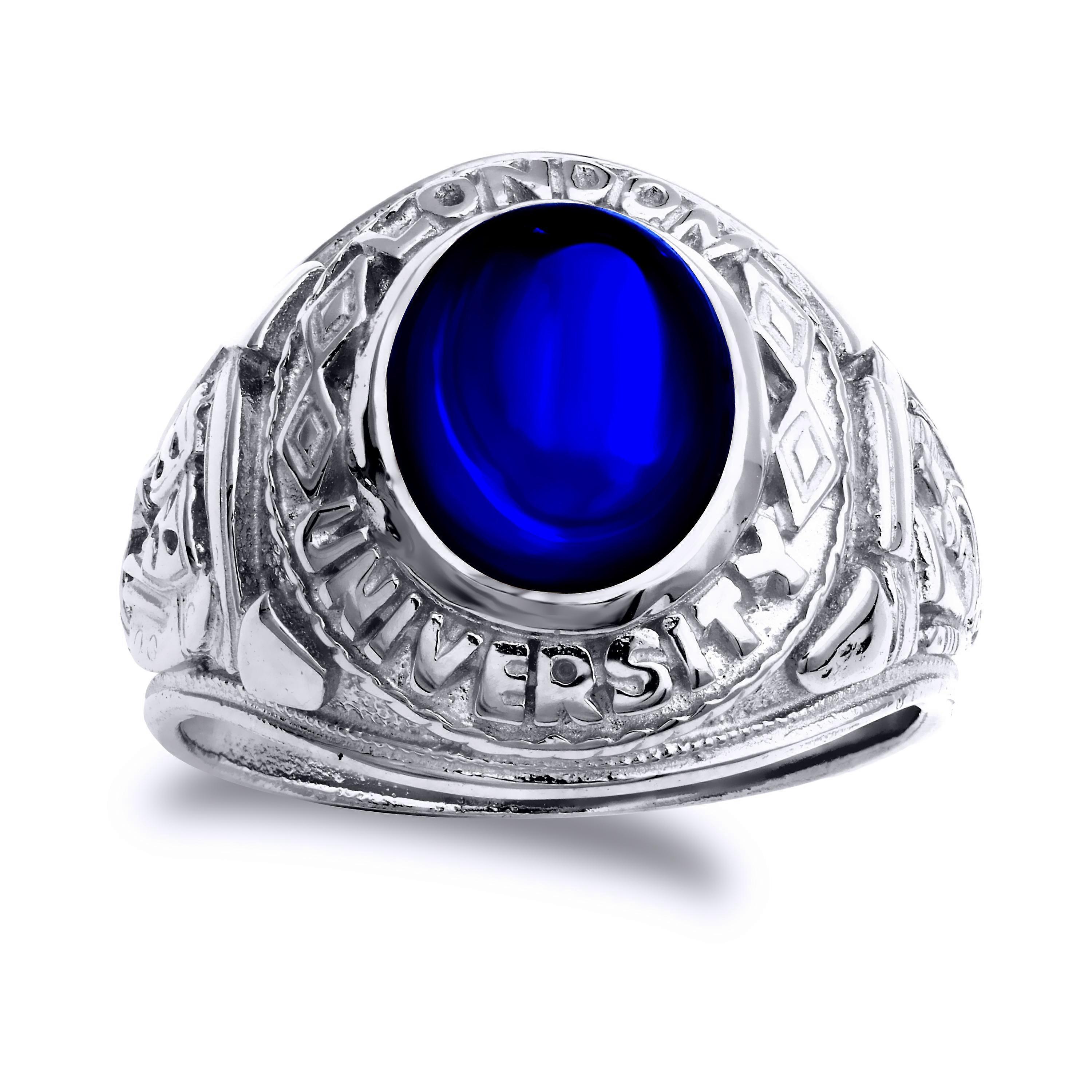 Jewelco London Rhodium Silver Blue Oval Cabochon CZ Solitaire London University College Graduation Class Ring