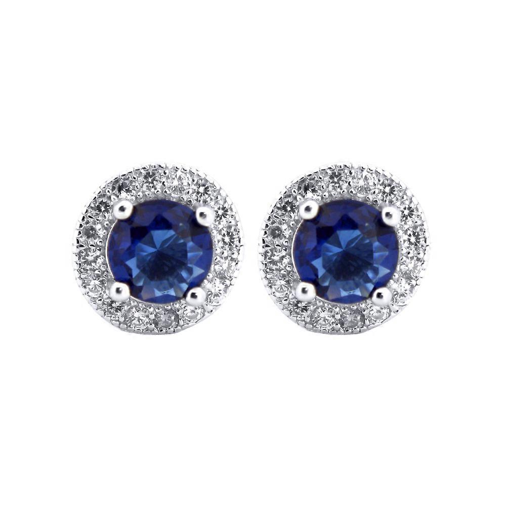 Jewelco London Rhodium Silver Blue Round Brilliant CZ Circle Halo Solitaire Cluster Stud Earrings