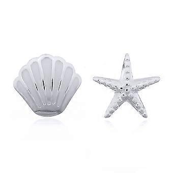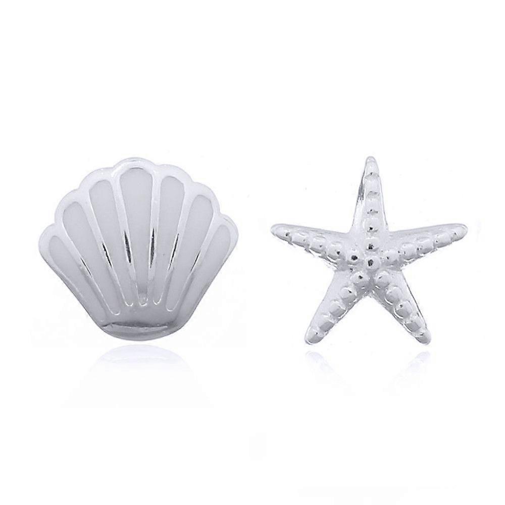 Jewelco London Rhodium Silver Enamel Scallop Sea Shell Starfish Stud Earrings