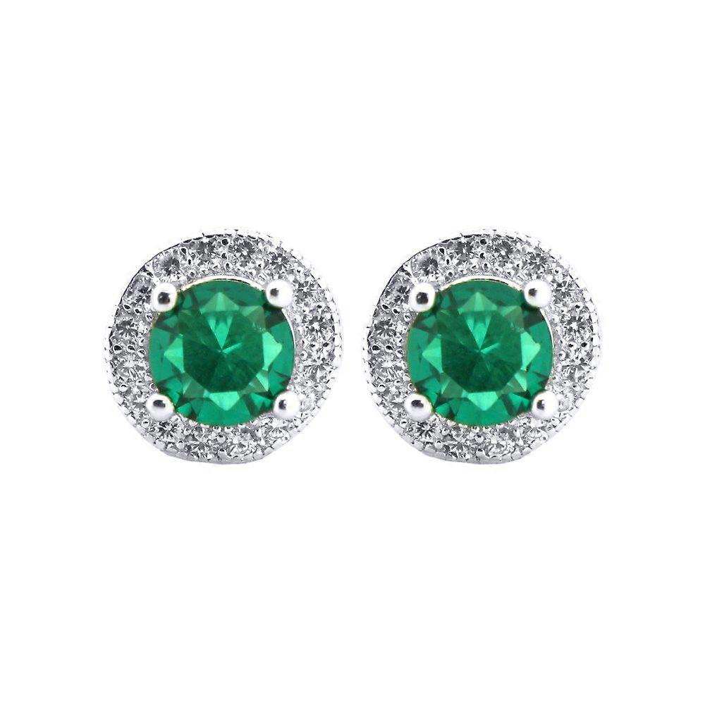 Jewelco London Rhodium Silver Green Round Brilliant CZ Circle Halo Solitaire Cluster Stud Earrings