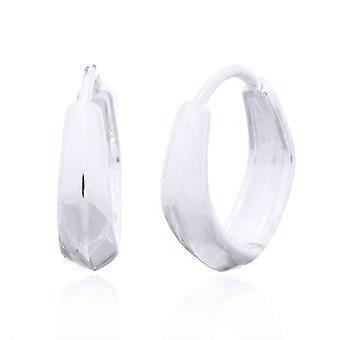Jewelco London Rhodium Silver Knife Edge Huggie Hoop Earrings