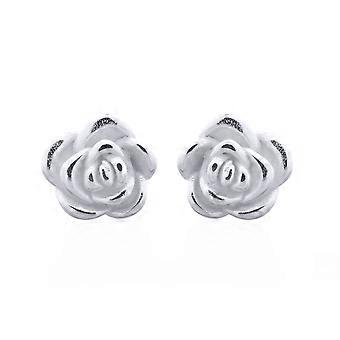 Jewelco London Rhodium Silver Layered Rose Petal Stud Earrings
