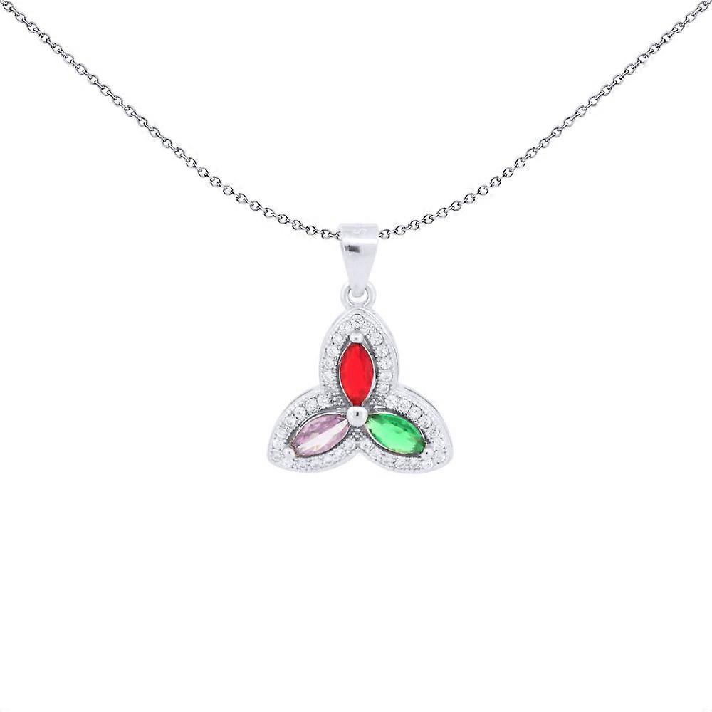 Jewelco London Rhodium Silver Red Green Lilac Marquise CZ Pointed Trefoil Trilogy Charm Pendant