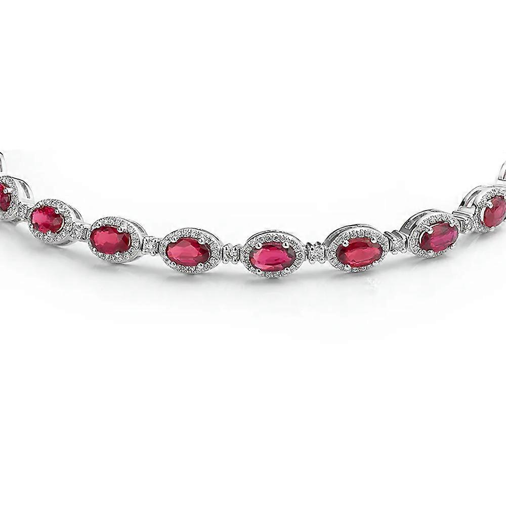 Jewelco London Rhodium Silver Red Oval CZ Alternating Halo Tennis Necklace