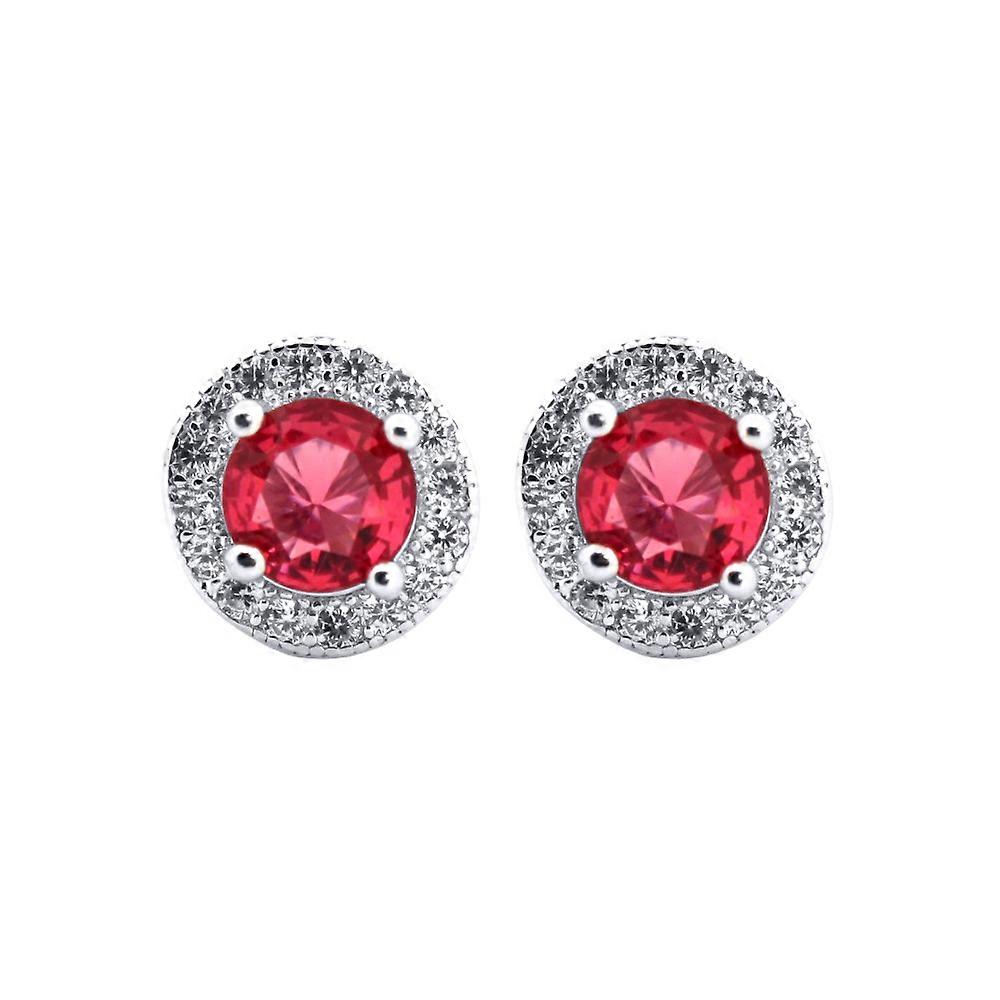Jewelco London Rhodium Silver Red Round Brilliant CZ Circle Halo Solitaire Cluster Stud Earrings
