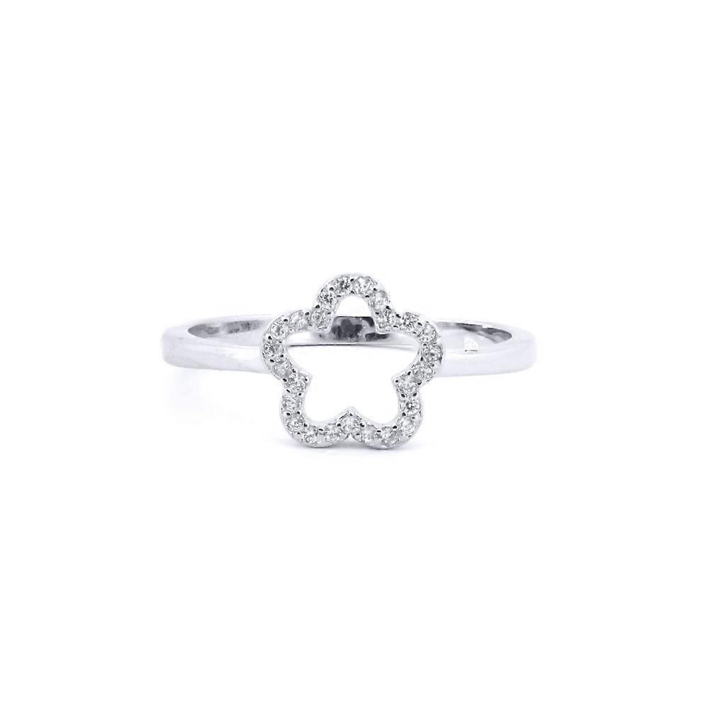 Jewelco London Rhodium Silver Round CZ Daisy Flower Outline Dress Ring