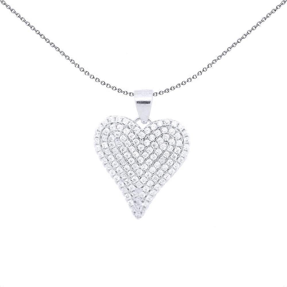 Jewelco London Rhodium Silver Round CZ Encrusted Love Heart Charm Pendant