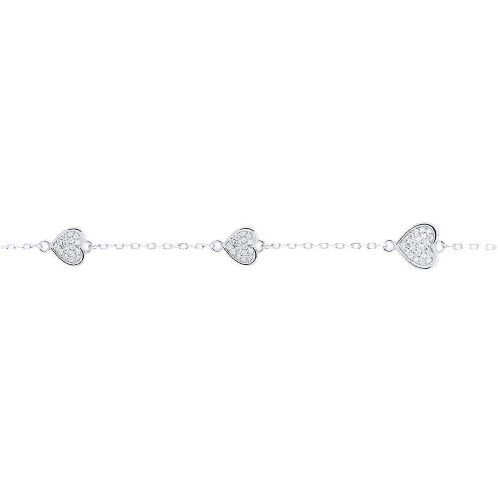 Jewelco London Rhodium Silver Round CZ Encrusted Love Hearts Charm Bracelet