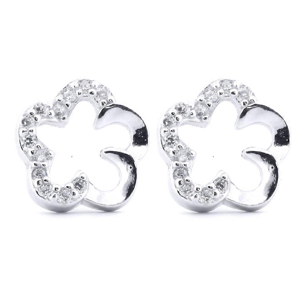 Jewelco London Rhodium Silver Round CZ Half Set Daisy Flower Stud Earrings