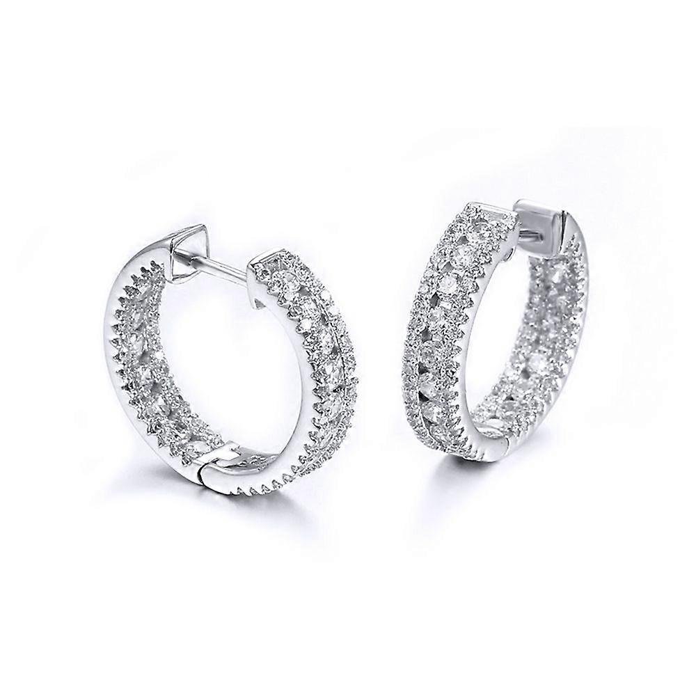 Jewelco London Rhodium Silver Round CZ Inside Out Channel Set Eternity Hoop Earrings 19mm