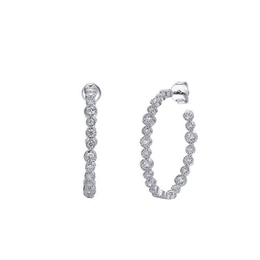Jewelco London Rhodium Silver Round CZ Inside Out Eternity Hoop Drop Earrings