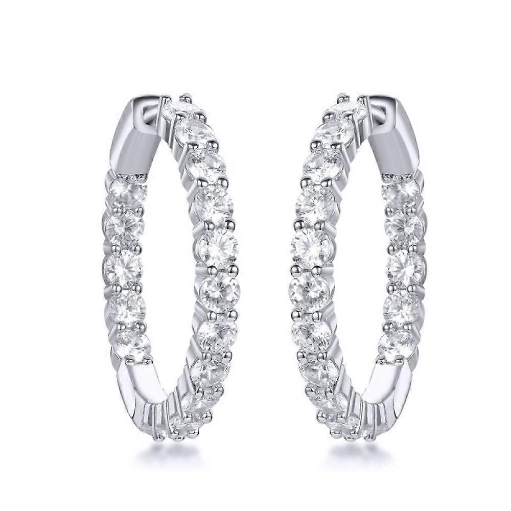 Jewelco London Rhodium Silver Round CZ Inside Out Eternity Hoop Earrings 22mm