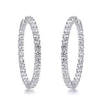 Jewelco London Rhodium Silver Round CZ Inside Out Pave Eternity Hoop Earrings 30mm