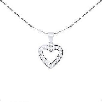 Jewelco London Rhodium Silver Round CZ Open Channel Love Heart Charm Pendant