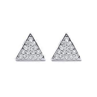 Jewelco London Rhodium Silver Round CZ Racked Snooker Balls Triangles Stud Earrings