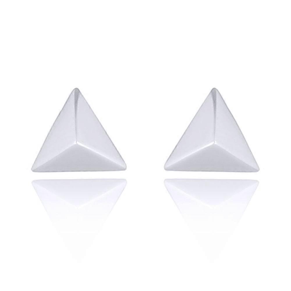 Jewelco London Rhodium Silver Triangular Pyramid Tetrahedron Stud Earrings