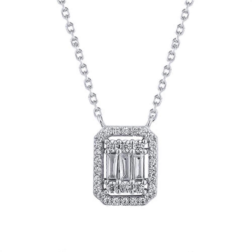Jewelco London Rhodium Silver White Emerald CZ Octagon Frame Cluster Pendant Necklace