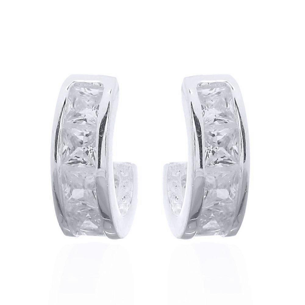 Jewelco London Rhodium Silver White Princess CZ Channel Set Eternity Half Hoop Stud Earrings