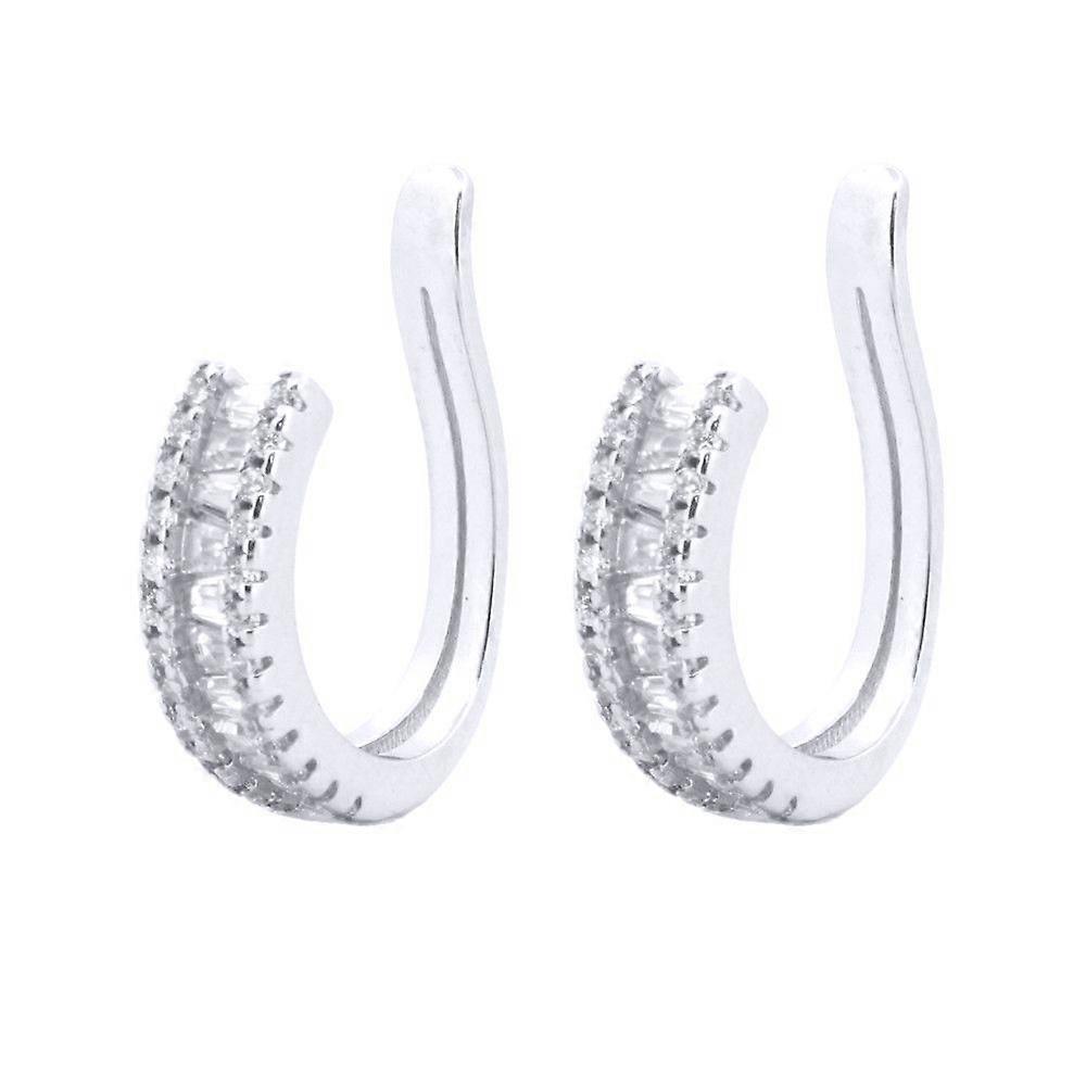 Jewelco London Rhodium Silver White Trapezoid CZ J hook Channel Set Eternity Slip-on Helix Cuff Earrings