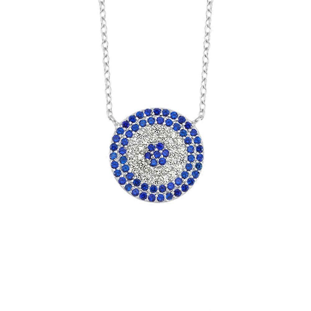 Jewelco London Rhodium Sterling Silver Blue CZ 6 Rings Disc Shield Pendant Necklace 16" + 3" extension