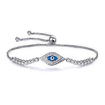Jewelco London Rhodium Sterling Silver CZ Anti Evil Eye Eternity Line Cluster 1mm Adjustable Slider Bracelet, 8.5"