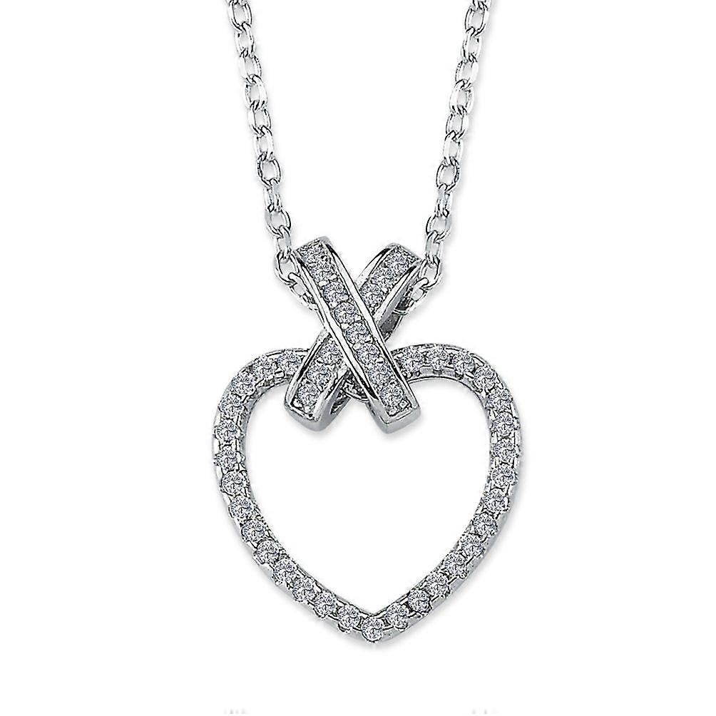 Jewelco London Rhodium Sterling Silver CZ Kissed Love Heart 1.1mm Pendant Necklace 16" + 1" extension