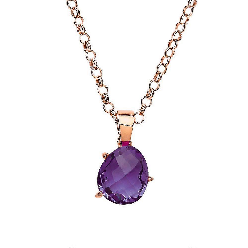 Jewelco London Rose Gold-Plated Sterling Silver Purple irregular-shape Cubic Zirconia Nugget Pendant Necklace 18 inch
