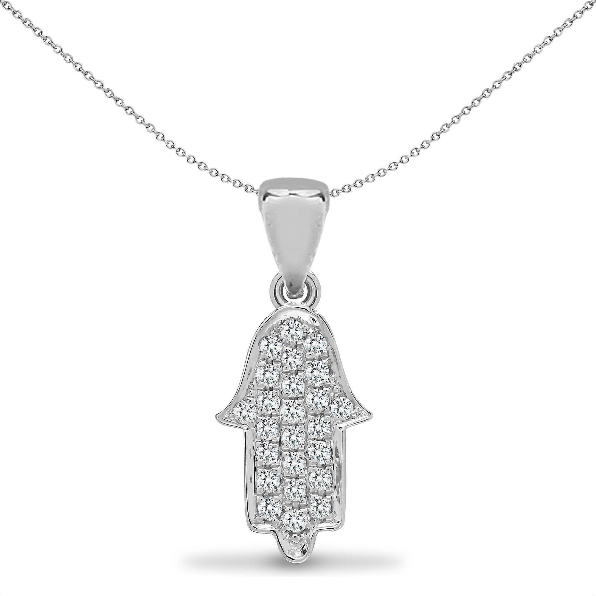 Jewelco London Solid 18ct 2 Colour Gold Pave Set Round G SI1 0.14ct Diamond Hamsa Lucky Charm Pendant