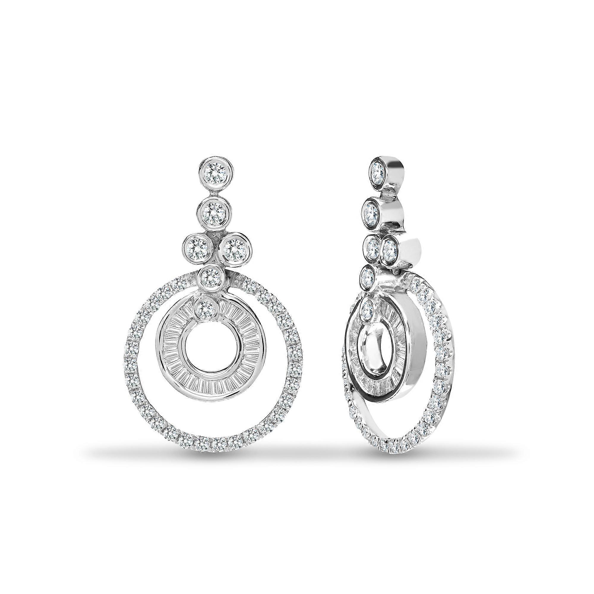 Jewelco London Solid 18ct White Gold Channel Set Baguette G SI1 0.62ct Diamond Halo Bubbles Drop Earrings