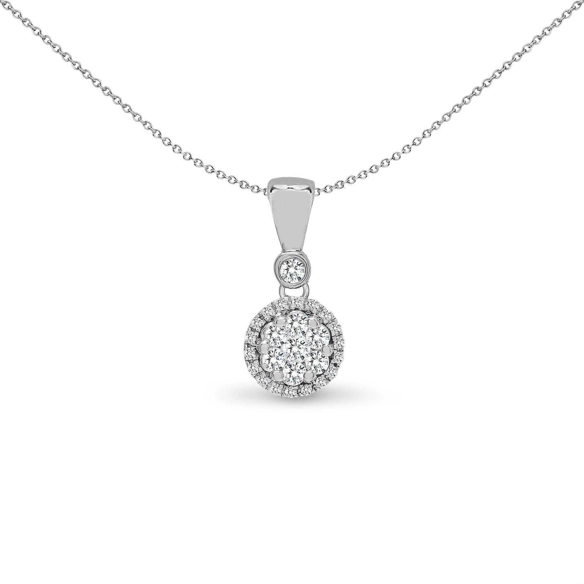 Jewelco London Solid 18ct White Gold Pave Set Round G SI 0.2ct Diamond Halo Cluster Drop Pendant