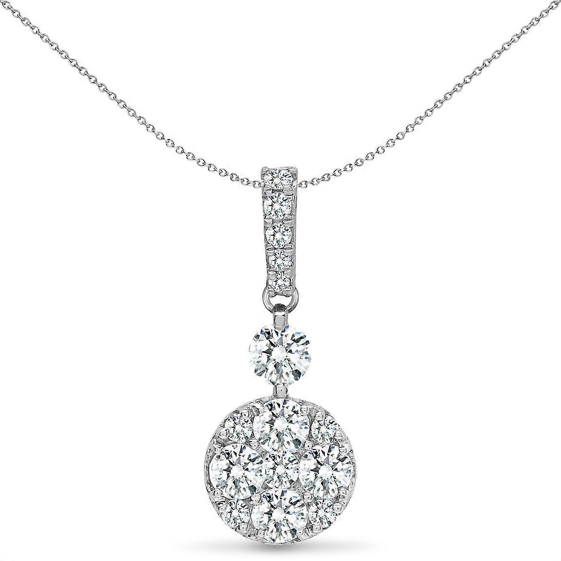 Jewelco London Solid 18ct White Gold Pave Set Round G SI 0.47ct Diamond Disco Cluster Drop Pendant