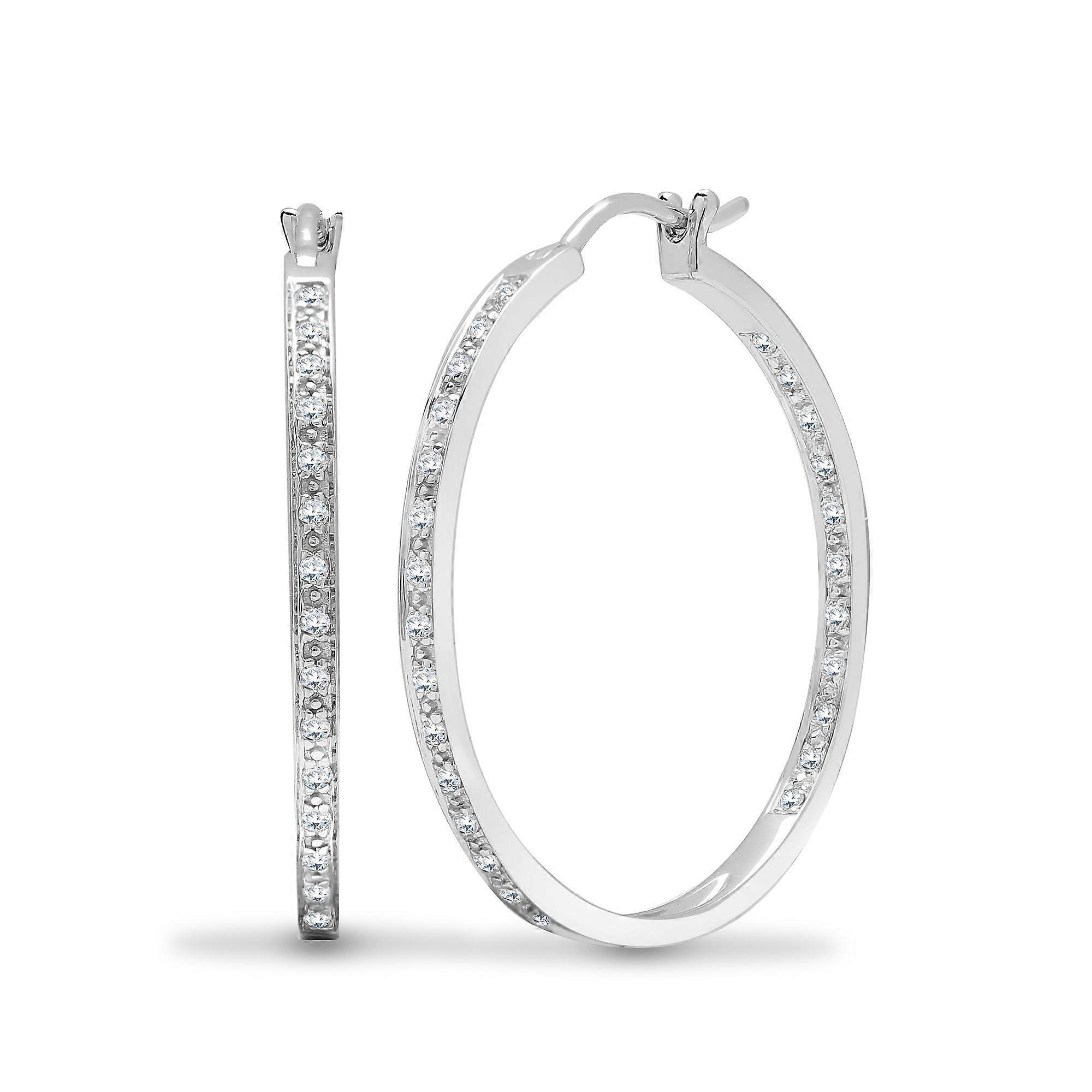 Jewelco London Solid 18ct White Gold Pave Set Round G SI1 0.31ct Diamond Eternity Huggie Hoop Earrings 28mm