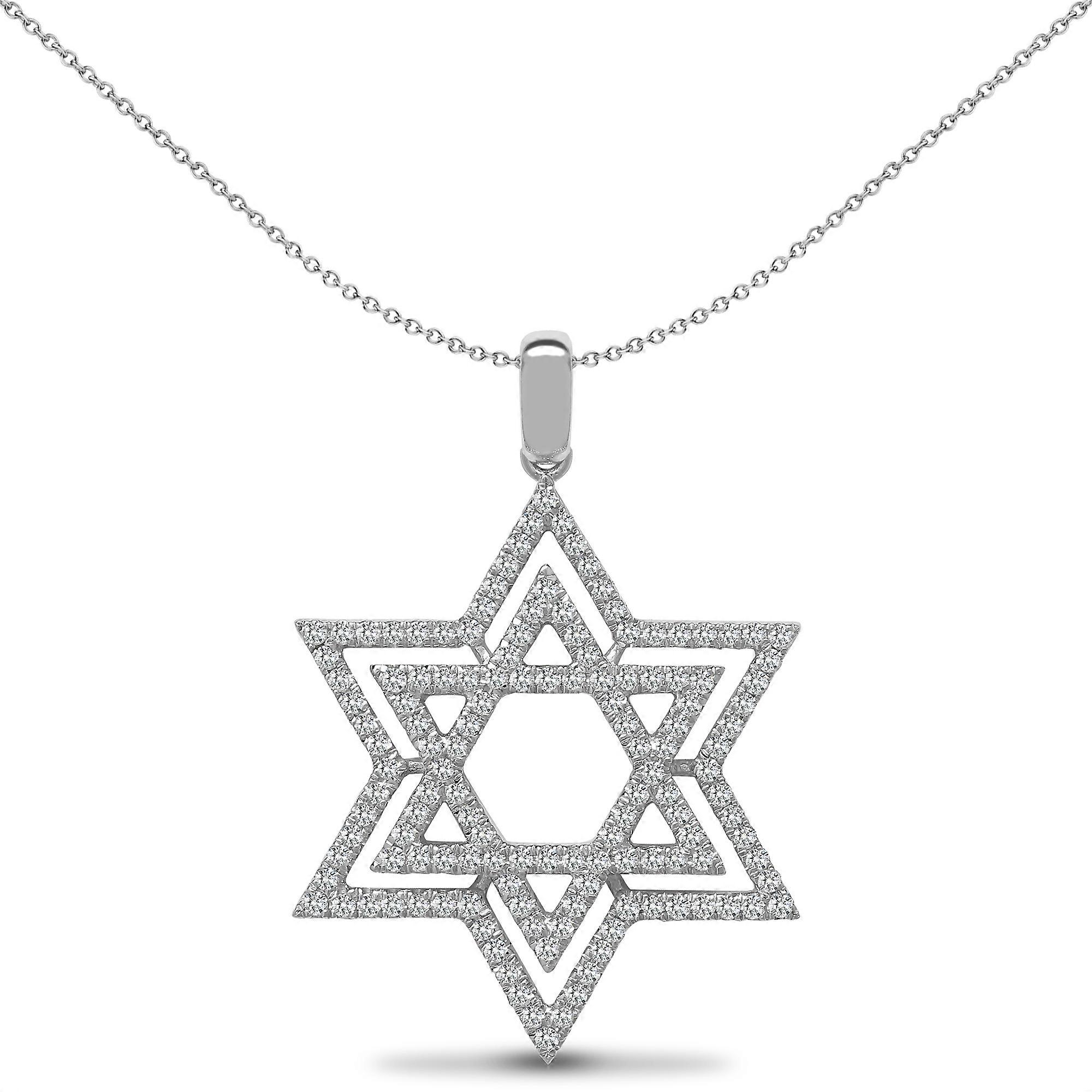 Jewelco London Solid 18ct White Gold Pave Set Round G SI1 0.6ct Diamond Magen David Star Charm Pendant