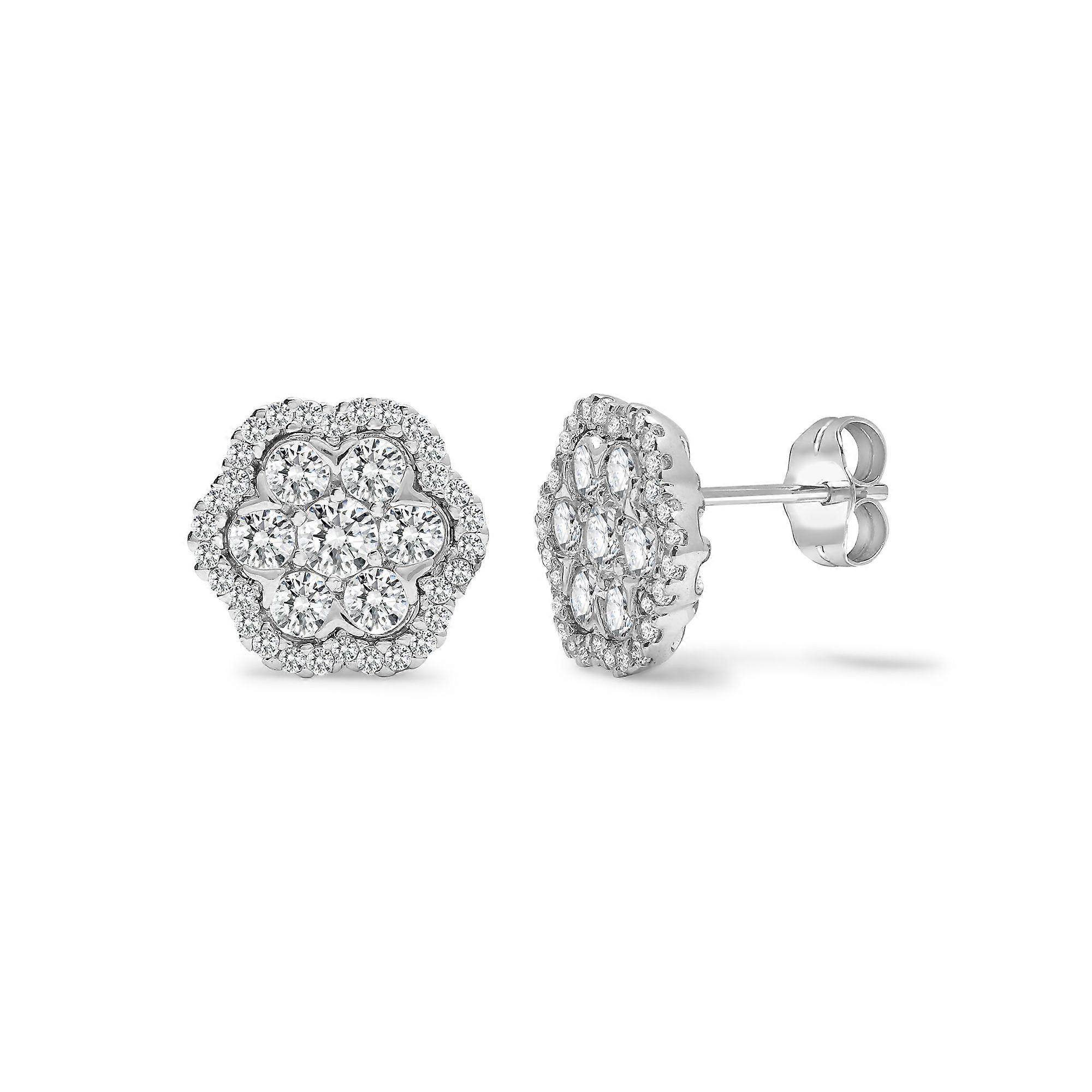 Jewelco London Solid 18ct White Gold Pave Set Round G SI1 1.26ct Diamond Snowflake Cluster Stud Earrings